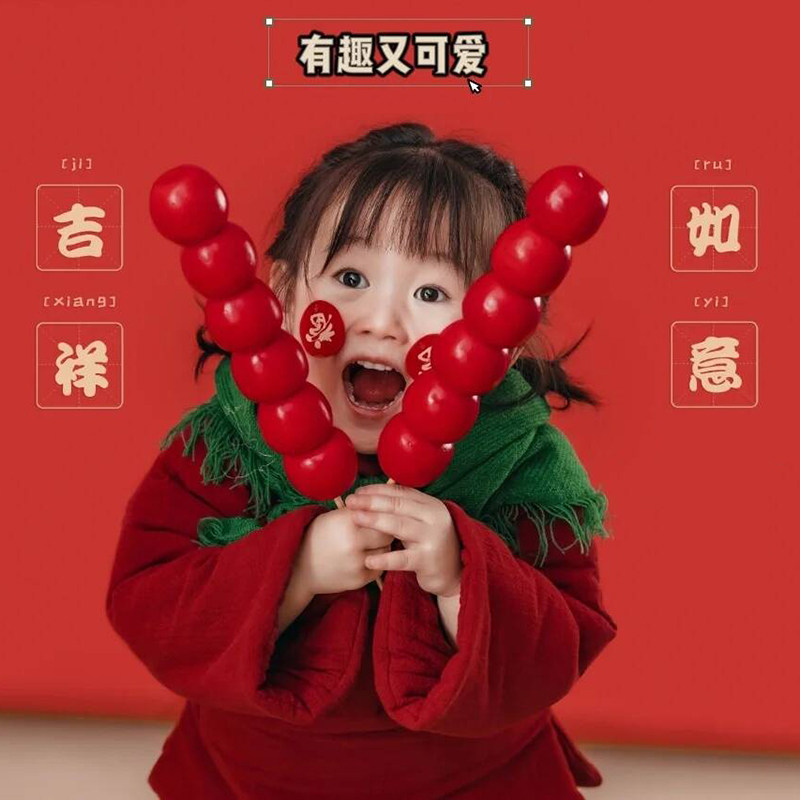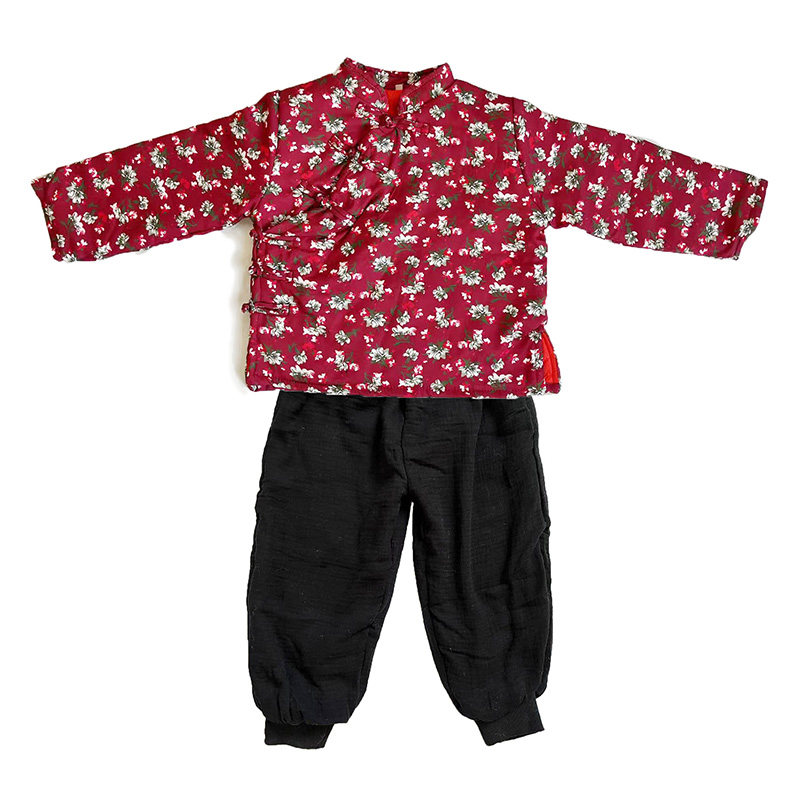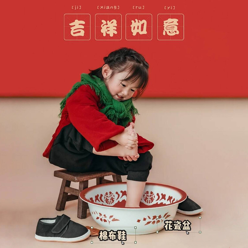 新款儿童新年女童土味棉袄过年喜庆拜年服拍照道具红色头巾中国风