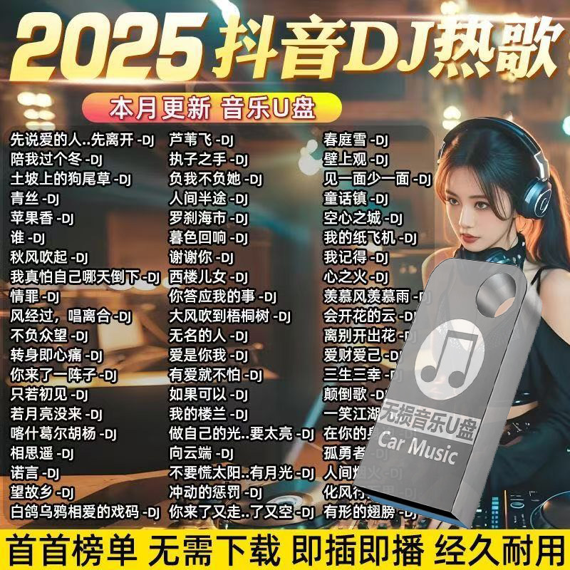 车载u盘歌曲2025新款流行抖音热门DJ歌曲无损高音质USB MP3优盘