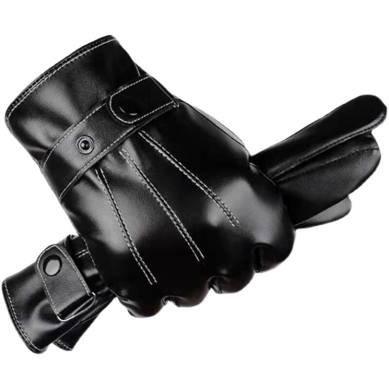 手套滑雪分指健身冬季中年皮手套骑行电动车冬天加绒加厚保暖加棉