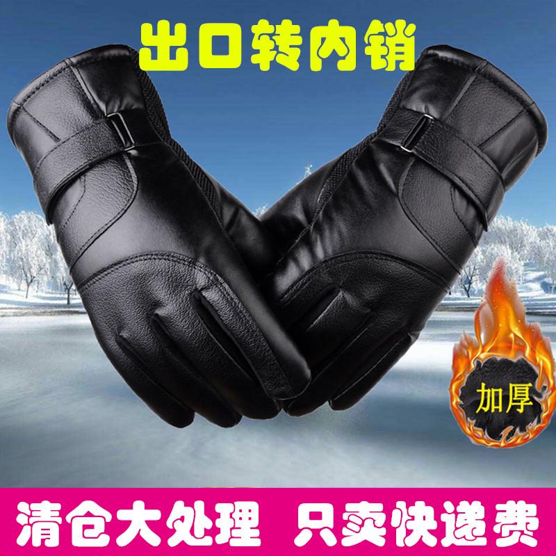 冬季骑行加绒皮手套加厚防水防风保暖触屏电动摩托车防寒加棉男女