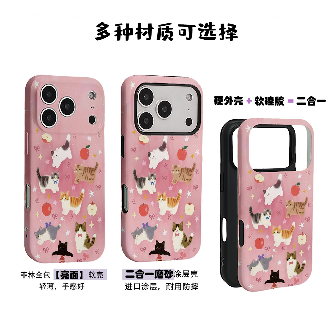 卡通梦幻粉底苹果猫咪菲林二合一手机壳适用苹果17nova14华为p70mate60小米15opporen14ovivo荣耀300iPhone16
