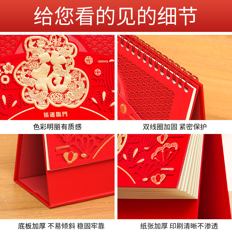 台历2026年新款日历桌面摆件办公室中国风马年创意翻页工位工作打卡计划本礼盒企业广告红色喜庆礼品月历定制
