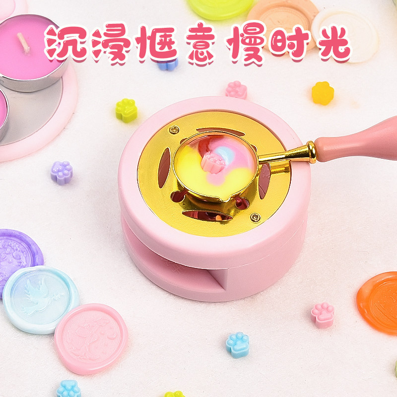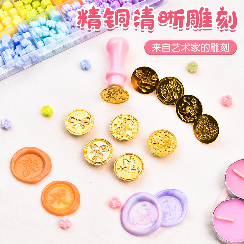 天然茶蜡无烟火漆印章套装火漆蜡粒火星印章章头火气印章儿童火漆炉蜡烛全部套装火机印章小烛台女孩火漆昂章