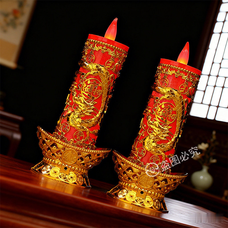 LED仿真电子蜡烛灯供佛入伙春节过年财神长明灯家用新款烛台电池