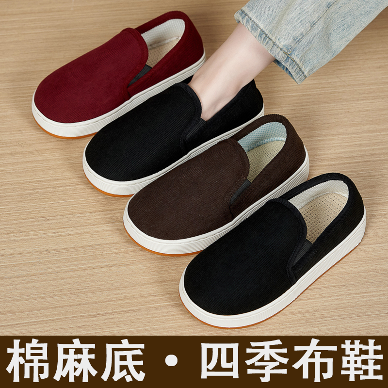 老北京棉麻四季布鞋男士透气吸汗防滑轻便一脚蹬居家外穿女休闲鞋