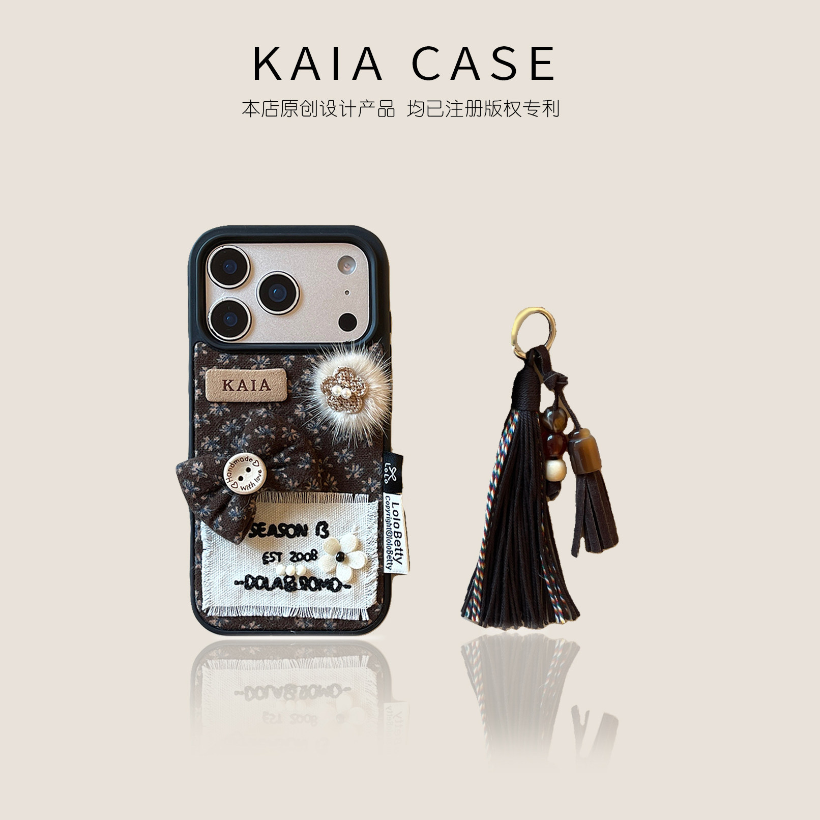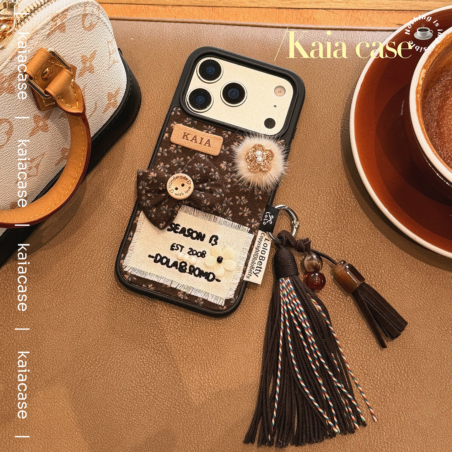 kaia 原创秋冬复古棕贴布碎花流苏适用苹果17promax手机壳iphone16pro新款15女14pro创意15pro全包防摔手机套