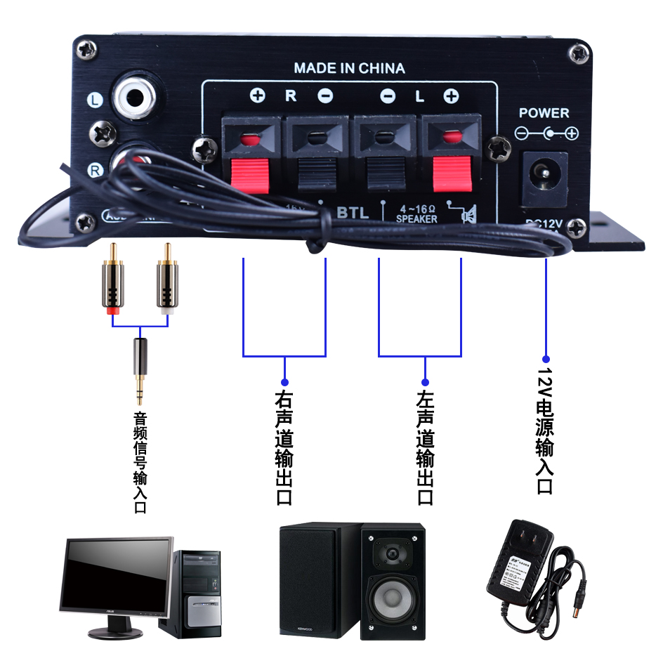 AK380迷你小型功放机家用车载多功能插卡12V蓝牙功放