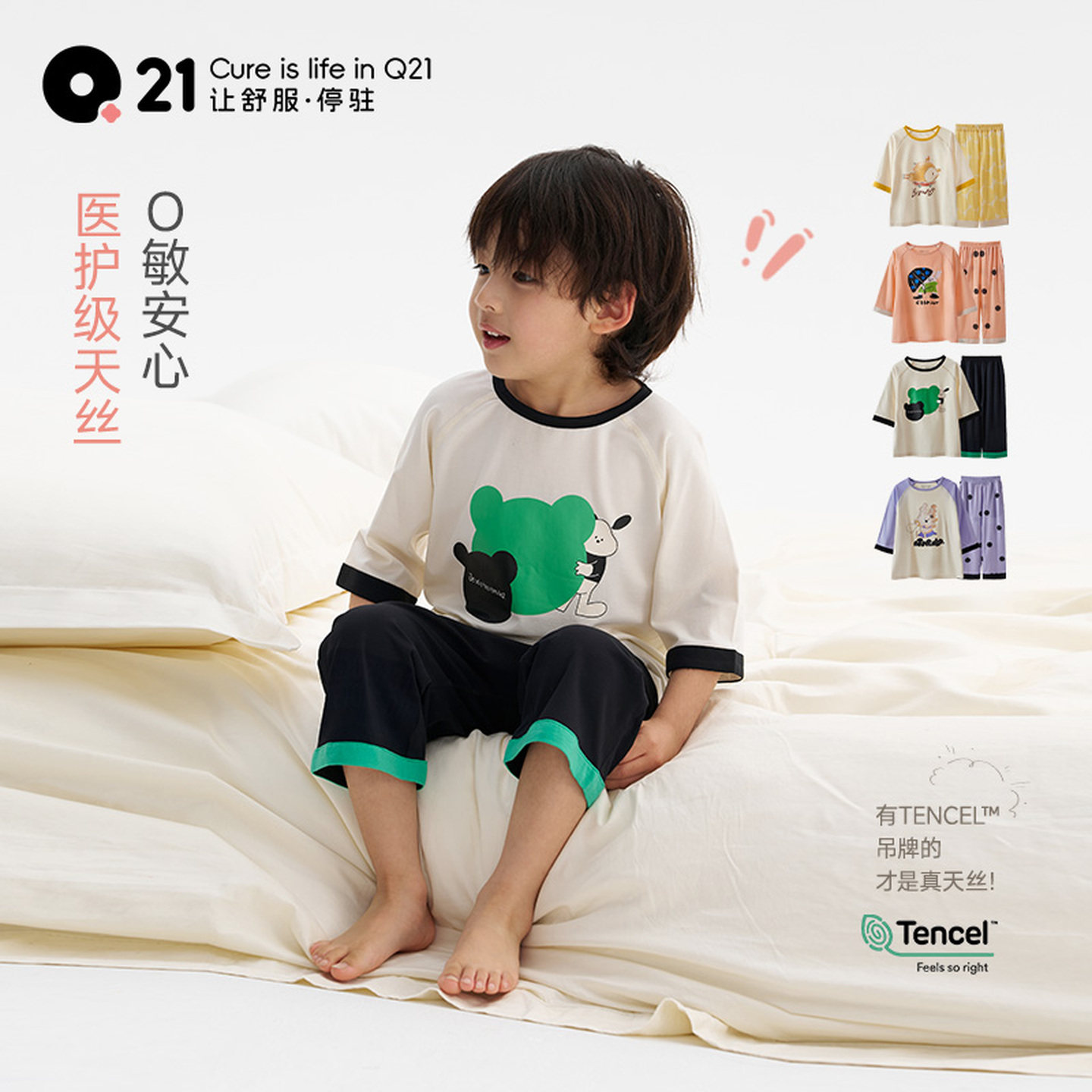 Q21天丝儿童家居服排汗睡衣套装男女童宝宝透气睡衣裤春夏季新款