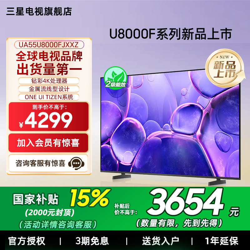 【补贴15%】Samsung/三星55U8000F 55英寸UHD智能电视 新品