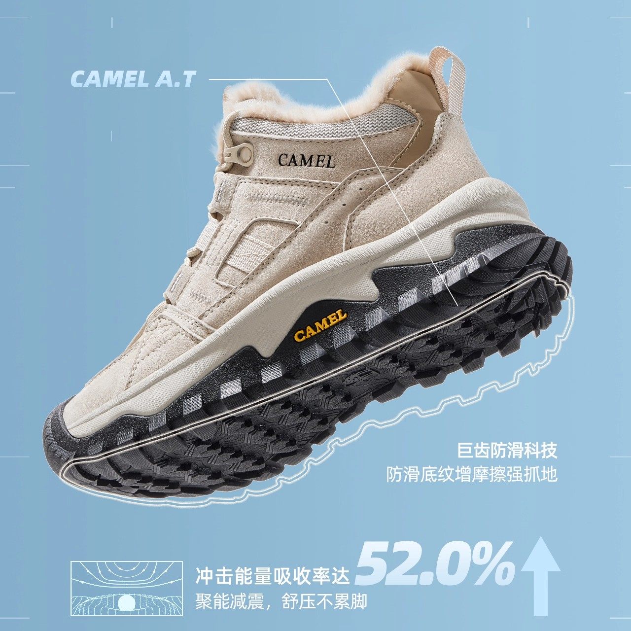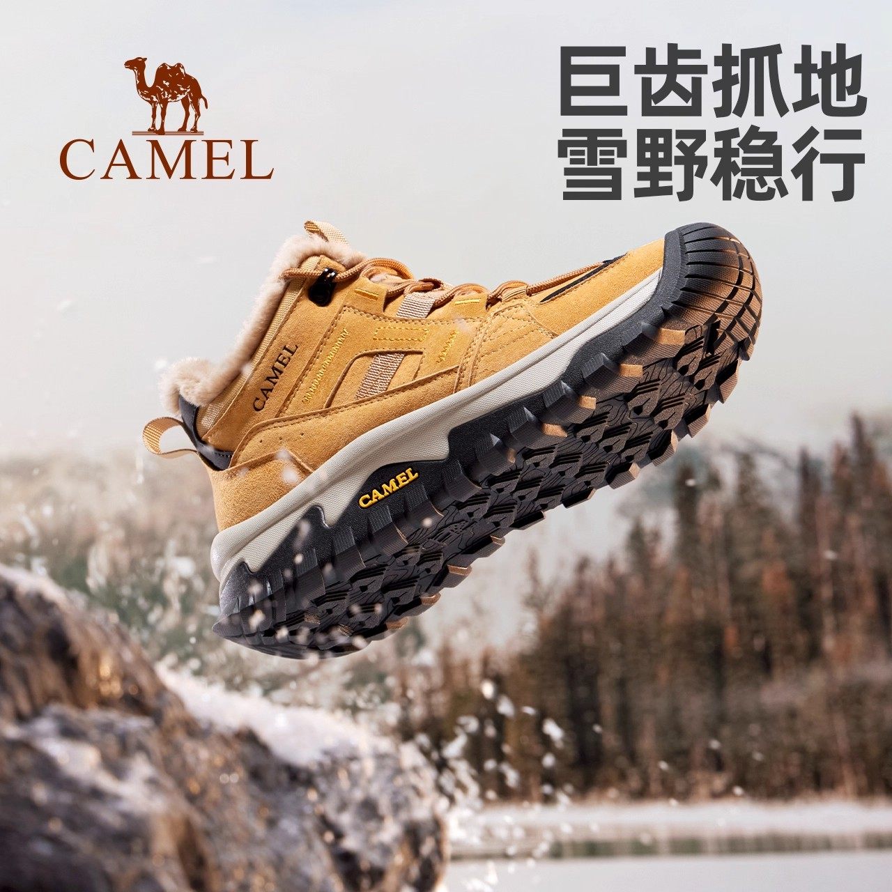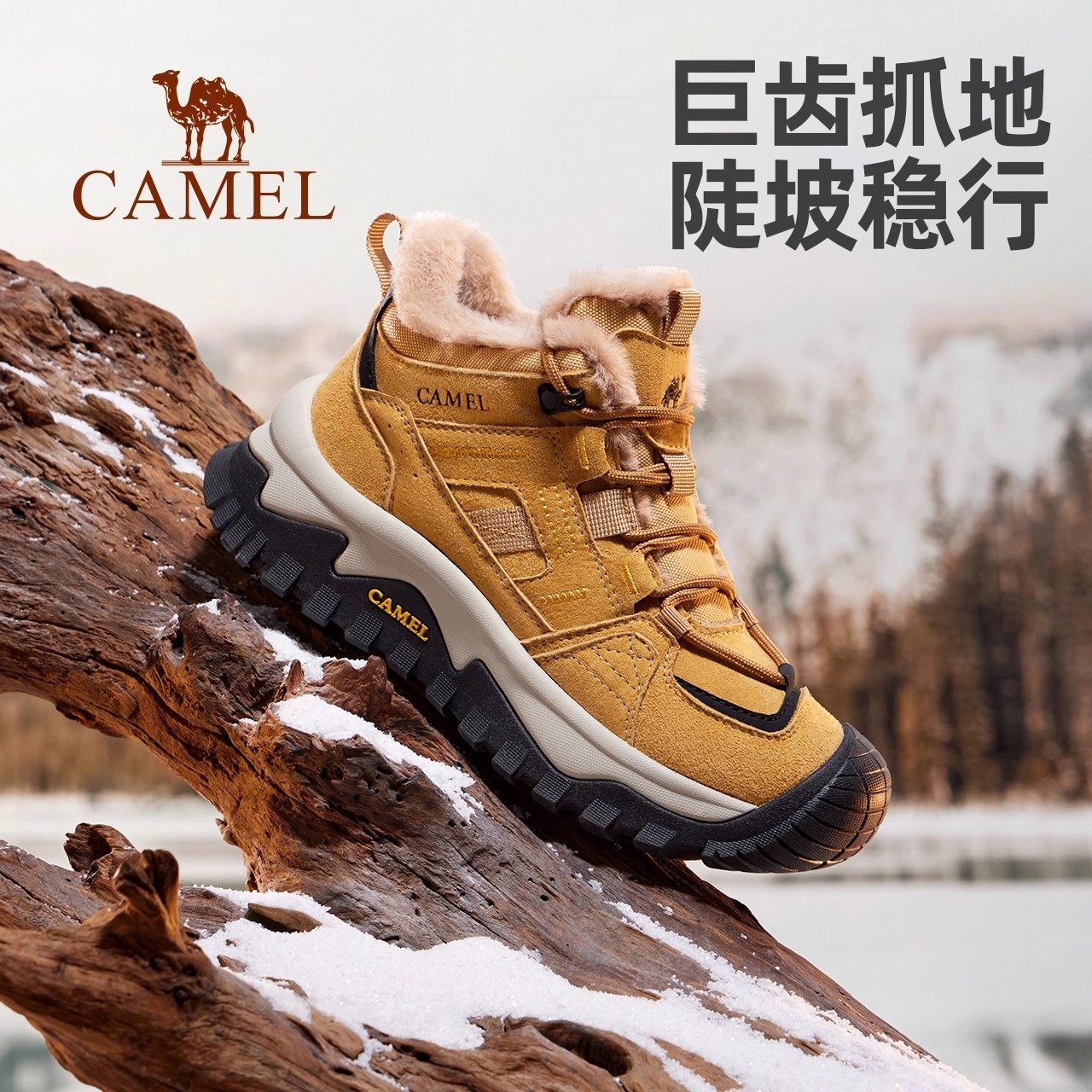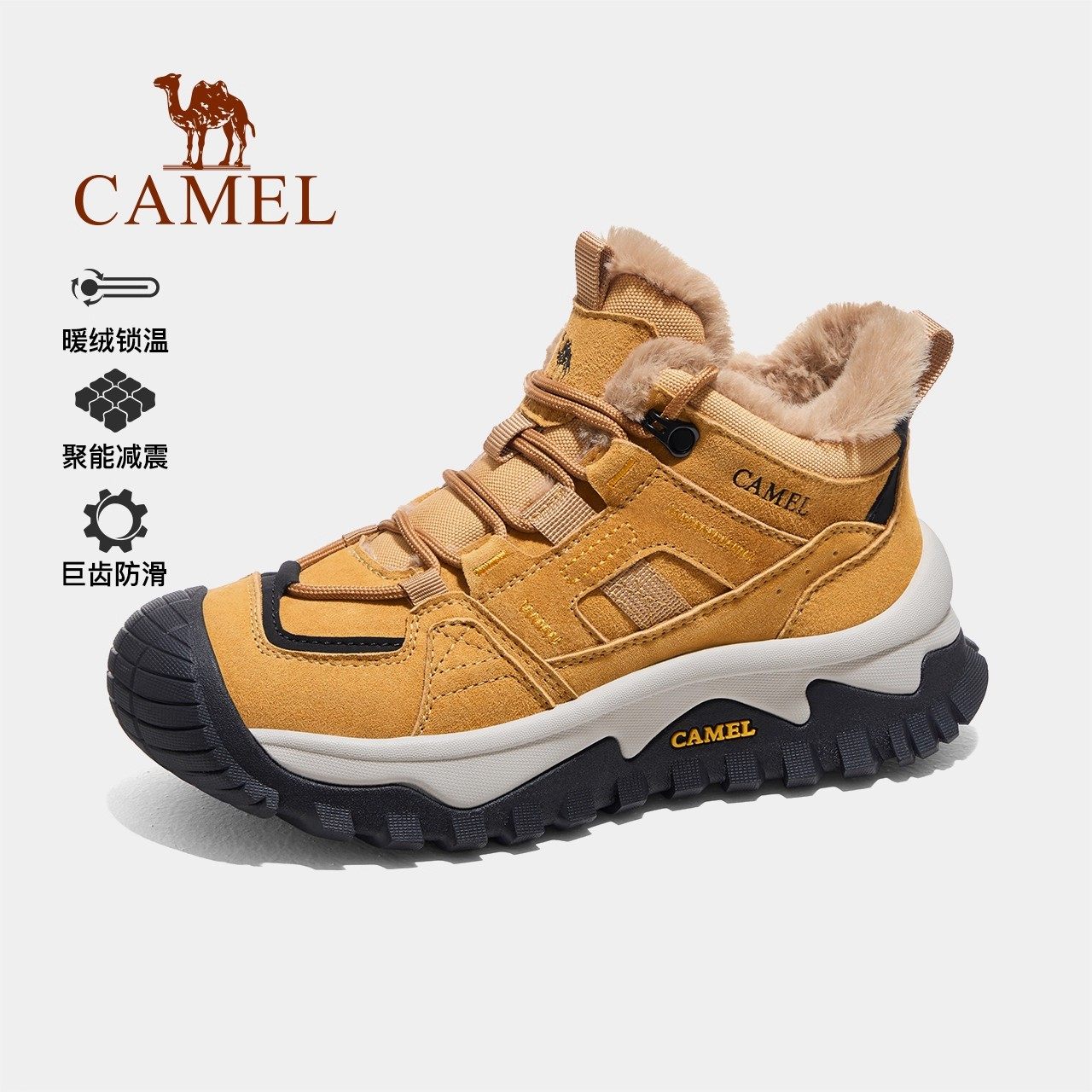 骆驼女鞋2025冬季新款户外加绒保暖棉鞋户外徒步登山鞋厚底短靴子