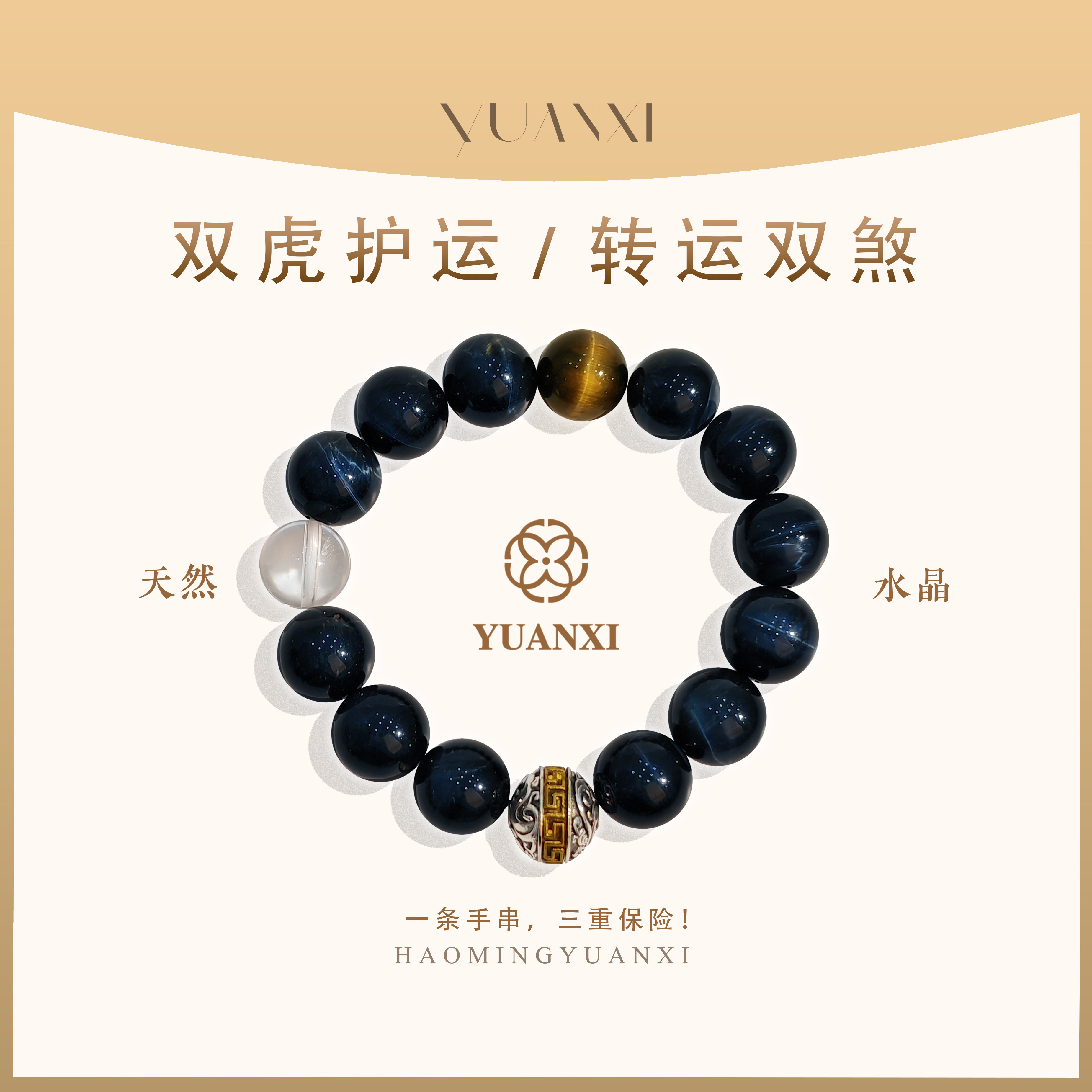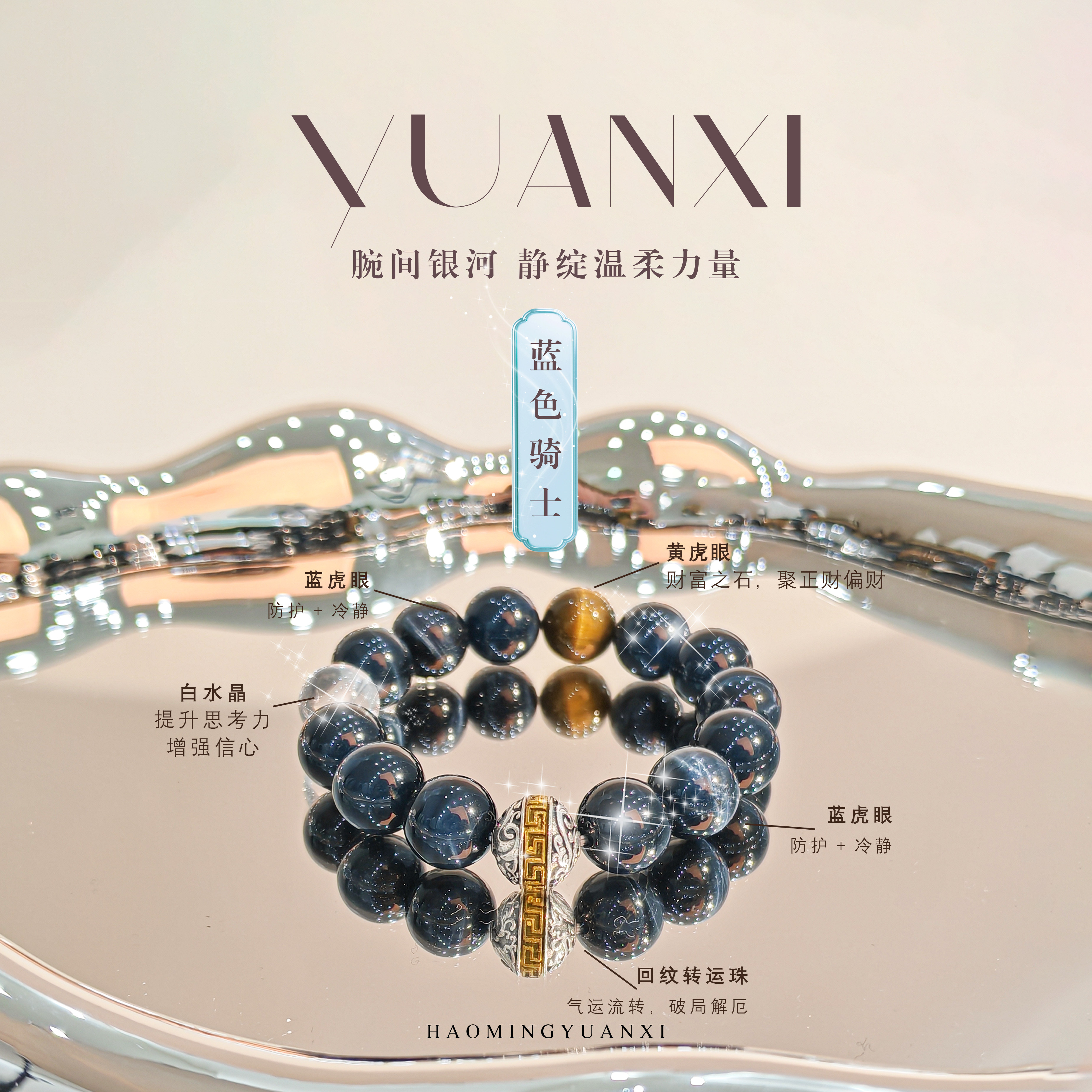 【蓝色骑士】YUANXI天然水晶虎眼石白水送男友女生闺蜜情侣送礼物