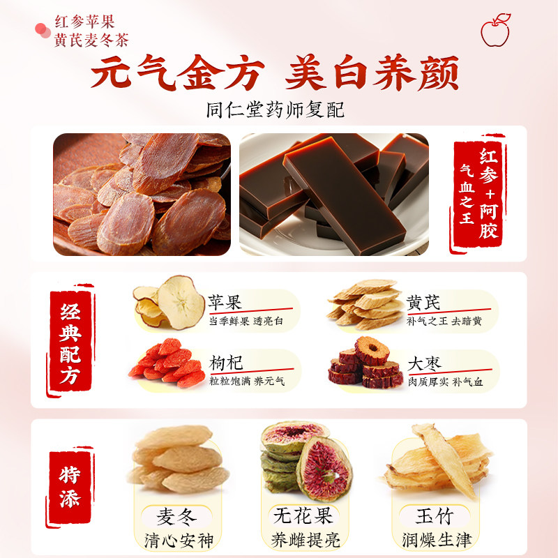 南京同仁堂苹果黄芪水麦冬红枣枸杞去黄补气血女人养生茶包信盛堂