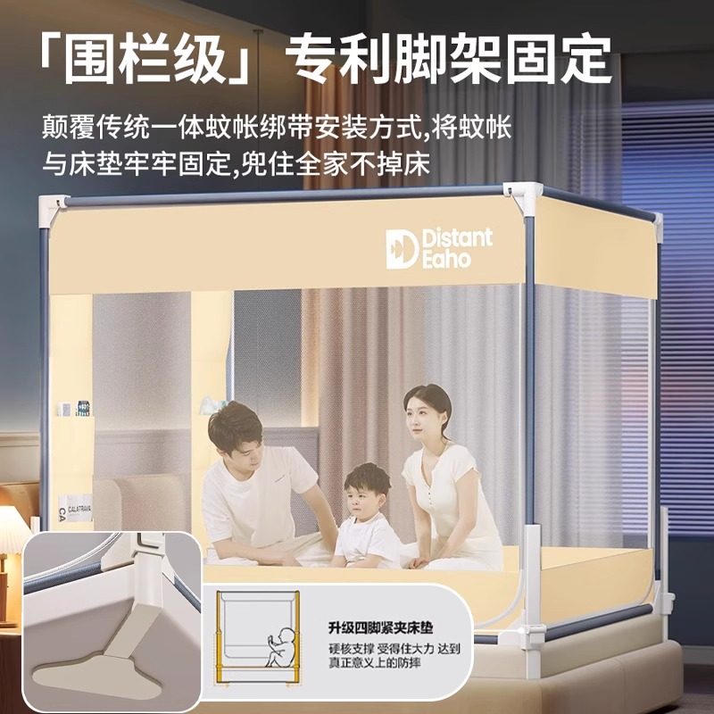 无印良品2025新款防摔蚊帐防尘床围栏儿童婴家用卧室纹帐防蚊支架