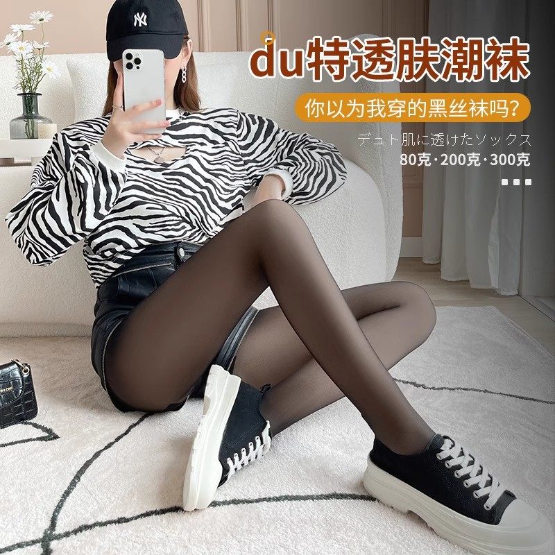 打底裤女黑透肤光腿神器女秋冬外穿一体加绒假透肉裤袜黑丝袜美腿