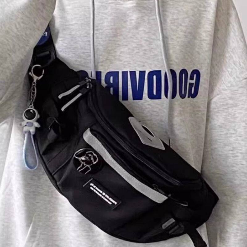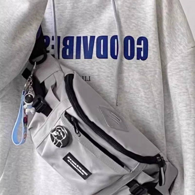 斜挎包男日系工装风运动腰包新款休闲百搭学生骑行单肩胸包潮背包