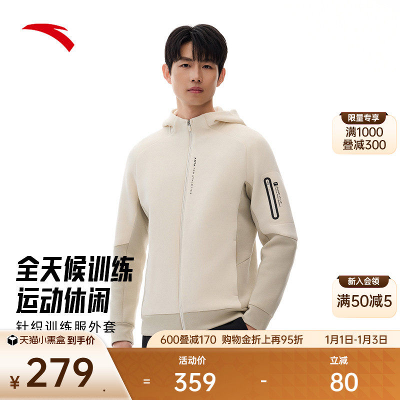 安踏运动外套男士冬季健身跑步开衫夹克运动服连帽上衣152517718S