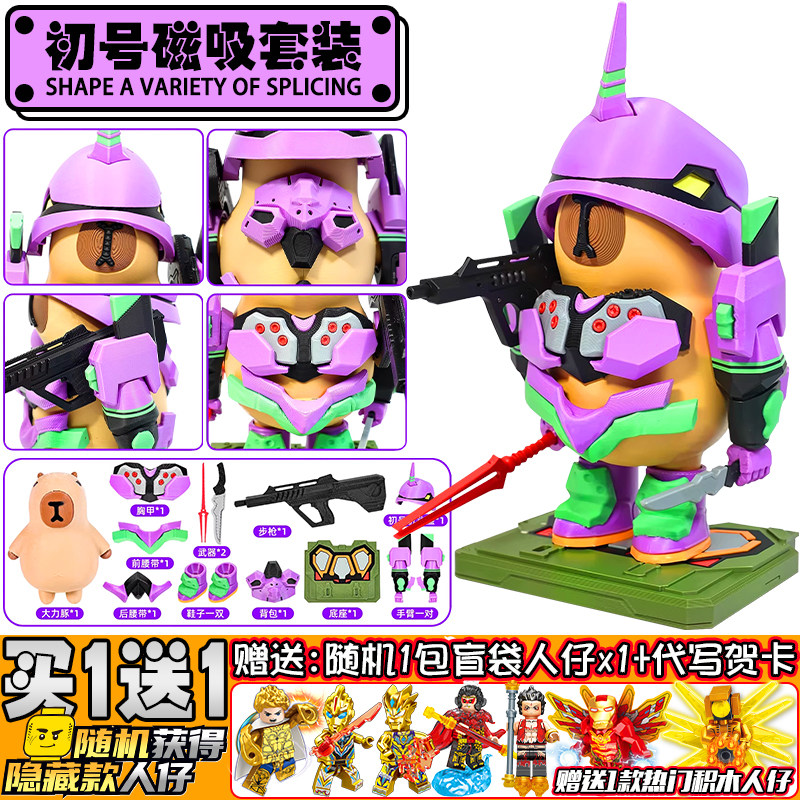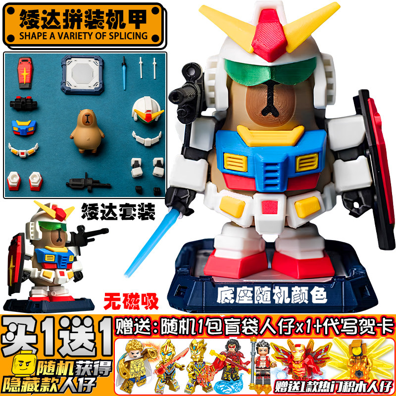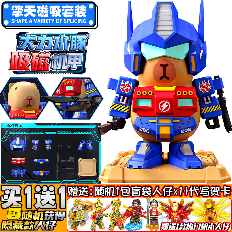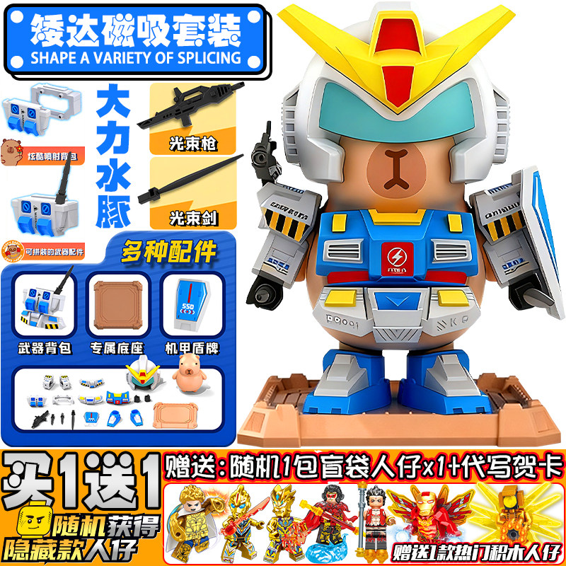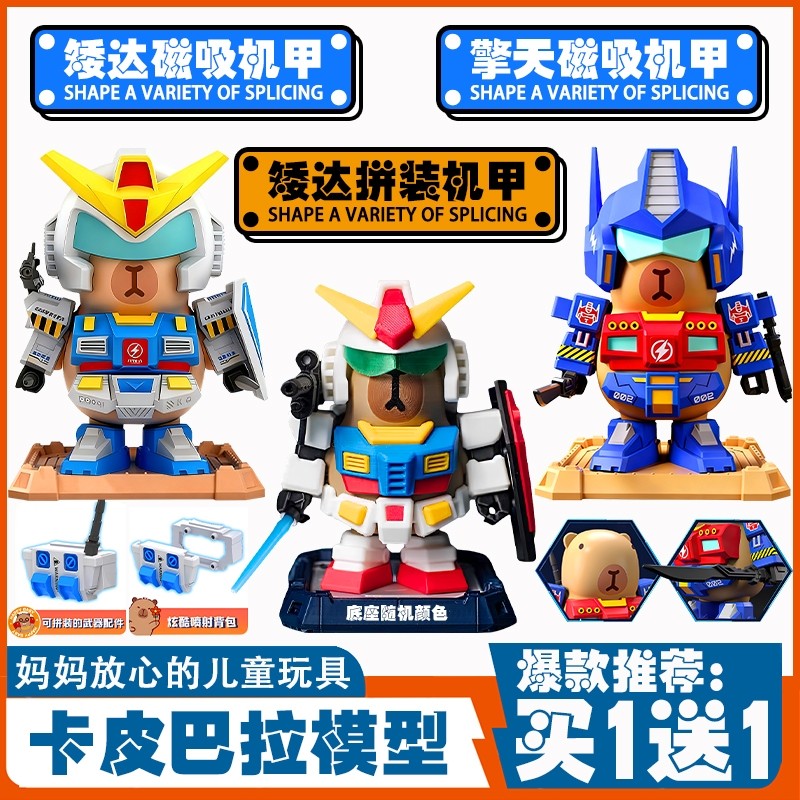 新款磁吸卡皮巴拉擎天机甲夜光手办水豚矮达高达模型组装儿童玩具