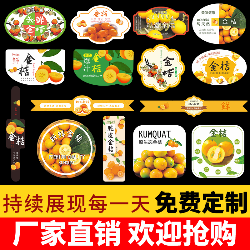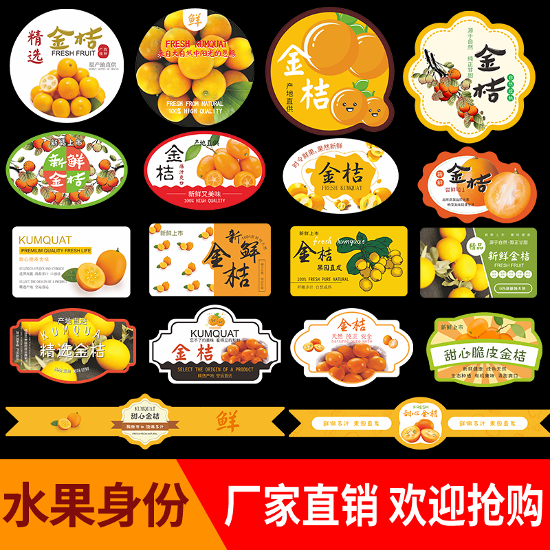 融安金桔标签水果贴纸甜心脆皮尤溪小金橘盒贴腰封不干胶商标定制