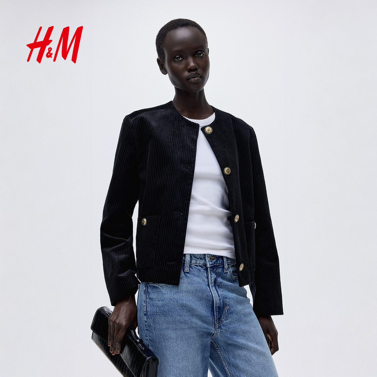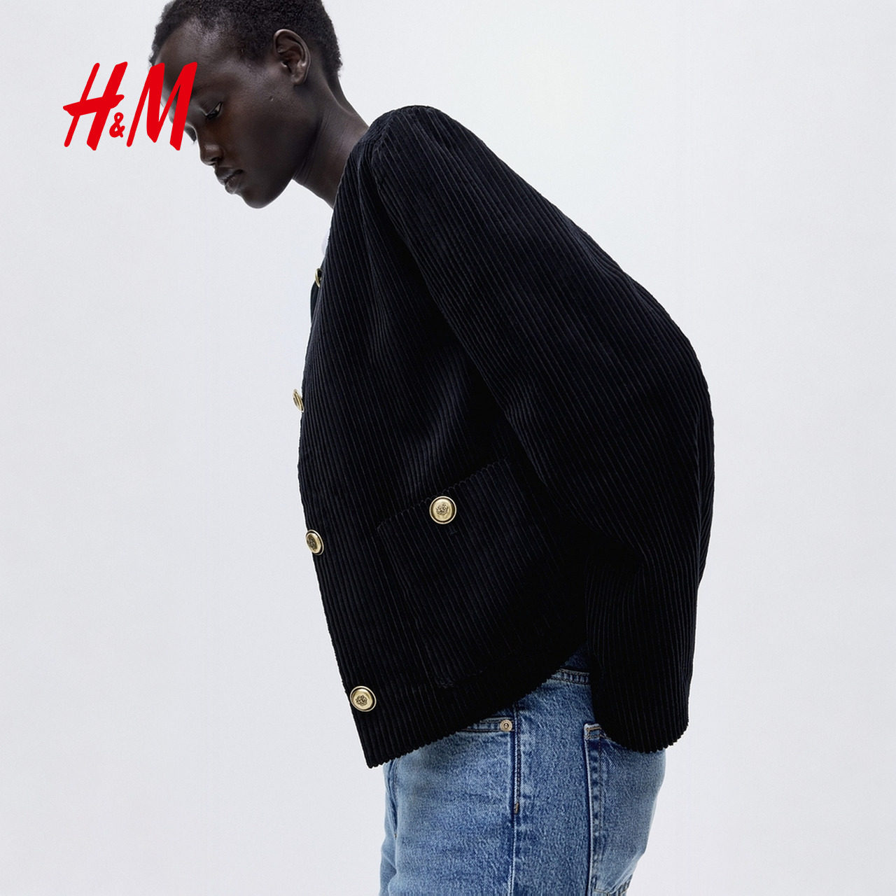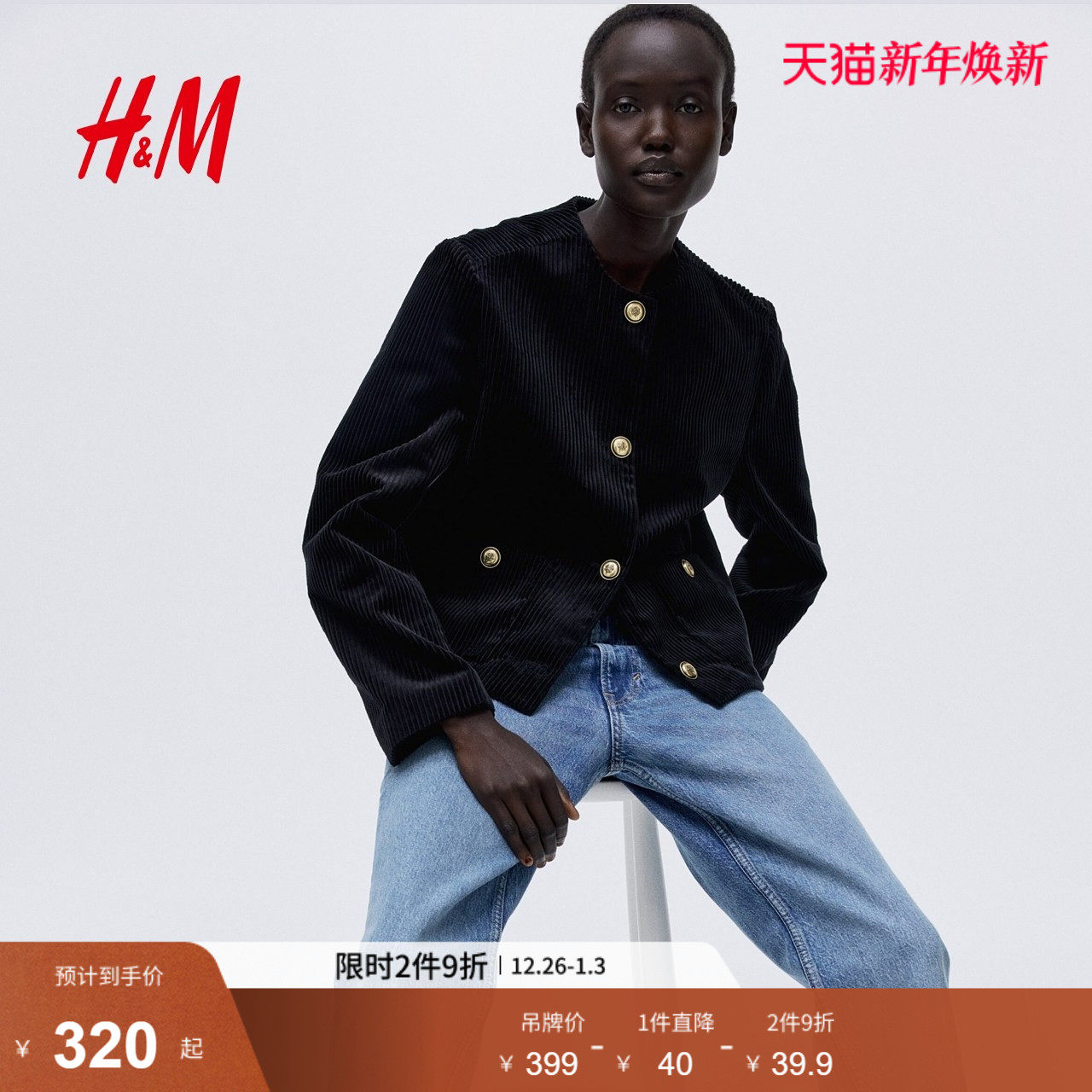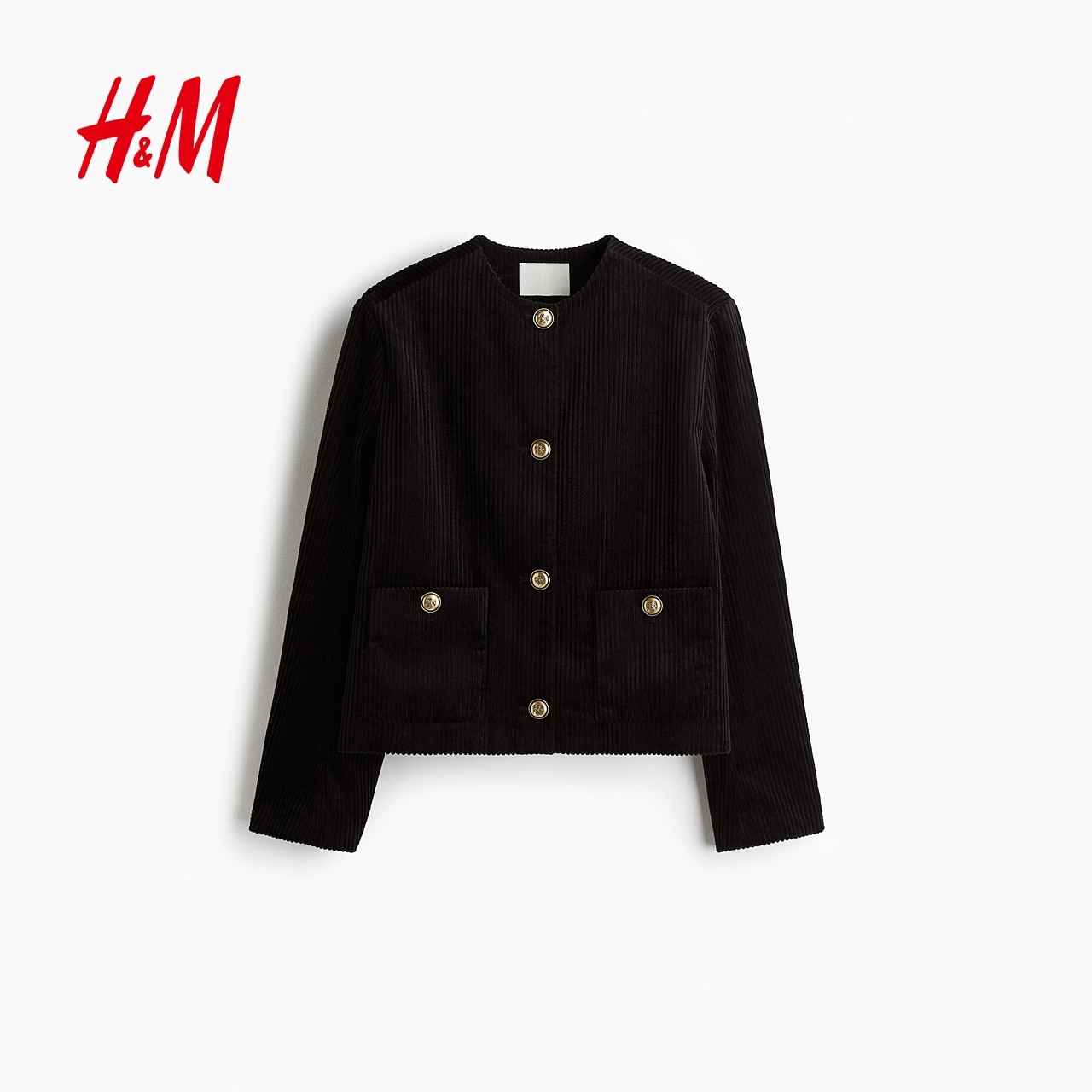 HM女装短外套2025冬季新款圆领小香风气质法式单排扣开衫1297493