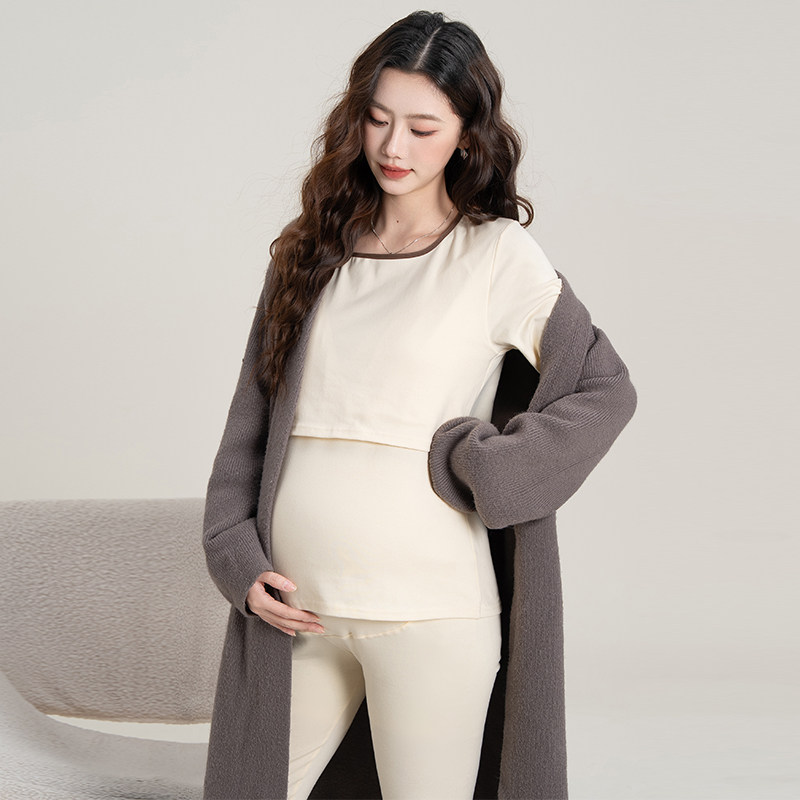 婧麒孕妇保暖内衣套装纯棉秋冬季款怀孕期产后哺打底衣乳秋衣秋裤