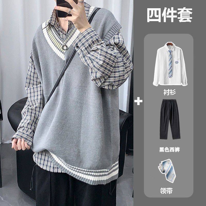 学院风套装男秋冬基础款dk背心针织衫制服情侣款港风jk女衬衣班服