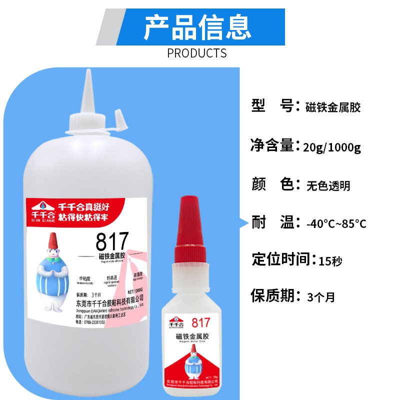 千千合817金属专用胶磁铁金属强力胶电镀铁耐高温耐冲击瞬干胶水