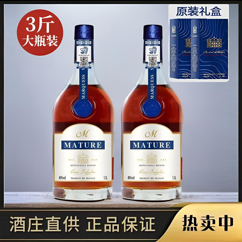 三斤装法国进口正品蓝爵XO白兰地蓝带洋酒双支礼盒装贝格大瓶装