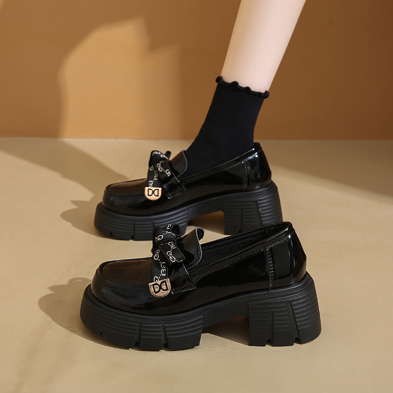 厚底乐福鞋女2025秋季新款一脚蹬英伦风黑色小皮鞋单鞋高跟圆头