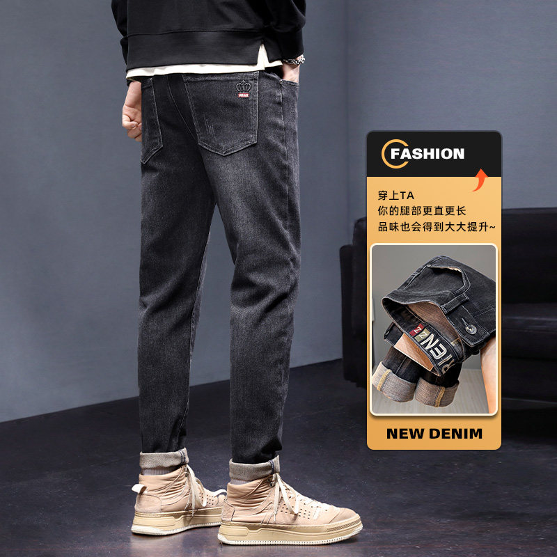 撤标撤柜(B)男士春秋款修身小脚秋季新款锥形秋冬款刺绣长裤子