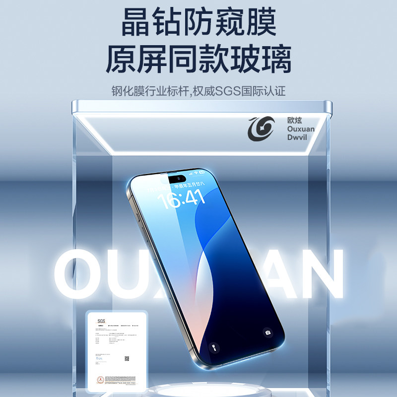 [不沾指纹]适用iPhone17/16钢化膜苹果15/14手机13promax防窥12全屏XR/xsmax全包11贴X防摔8por高清plus