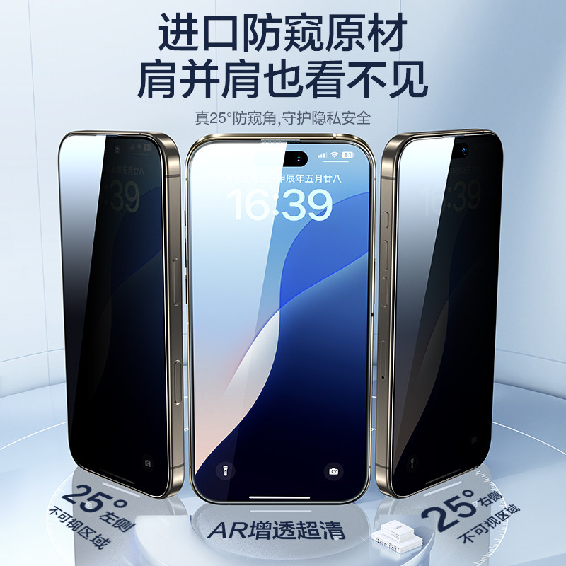 倍思无色防窥膜适用苹果iPhone17ProMax钢化膜16Pro无尘仓ip15手机贴膜AR抗反射360°防偷窥14防摔Air保护13