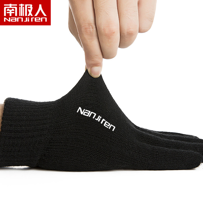 南极人秋冬季针织手套女士触屏加绒厚户外开车骑行全指半指男士J