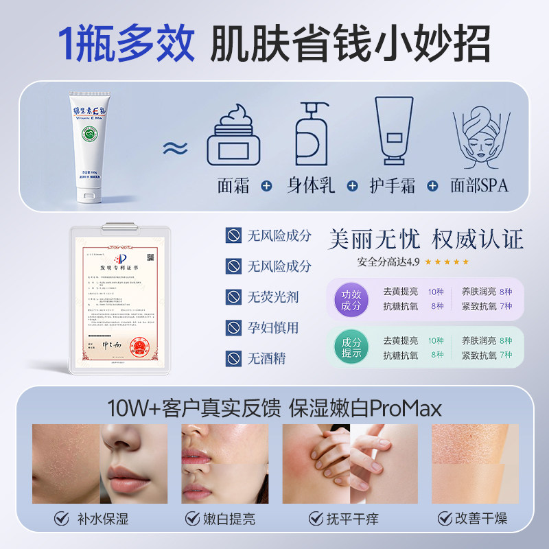 维生素e乳膏身体乳保湿滋润女皮肤干燥润肤液男士正品官方旗舰店