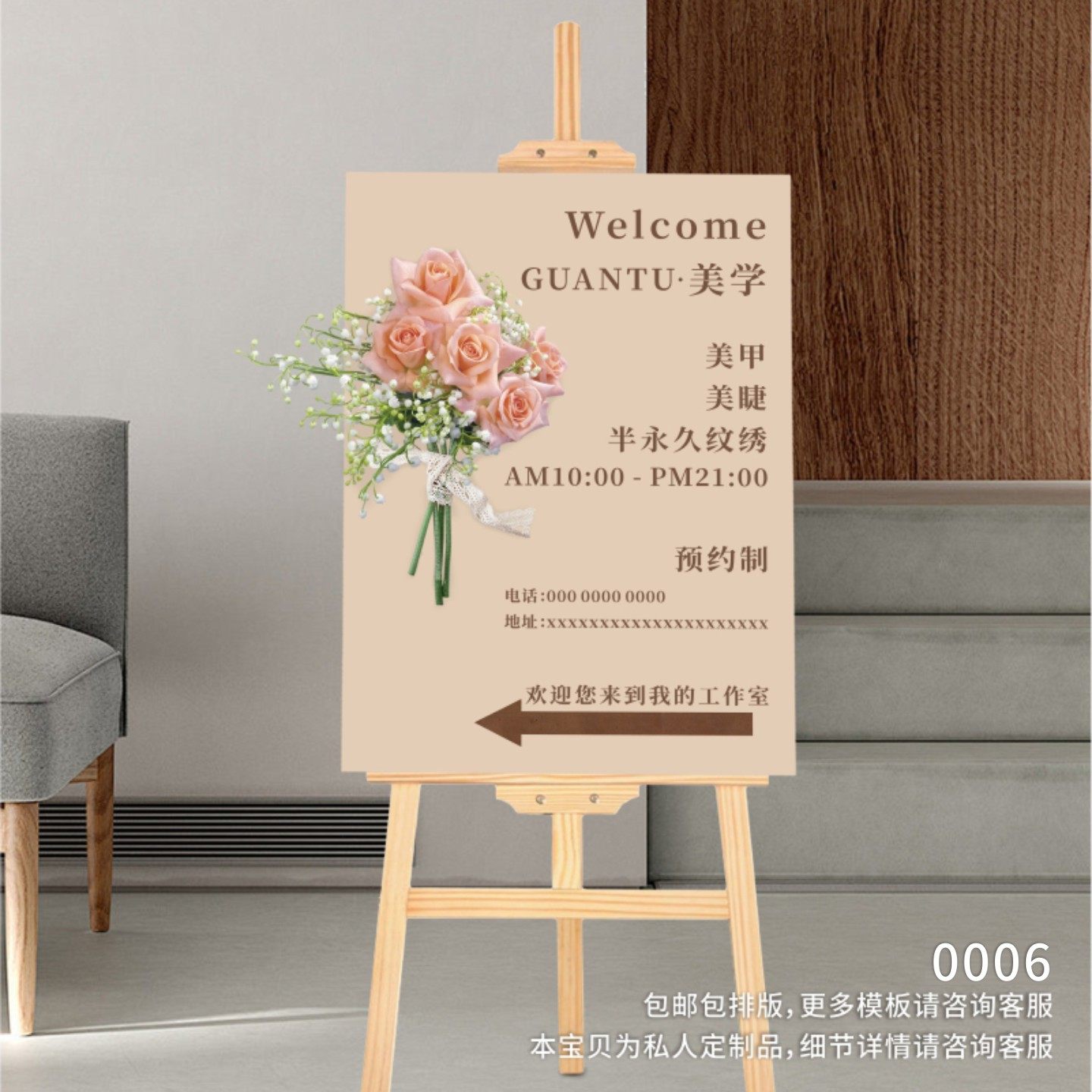 美甲纹绣开业周年庆宣传海报设计kt板木质展示牌展示架美容院皮肤管理会员充值价目表印刷广告贴纸泡沫板定制