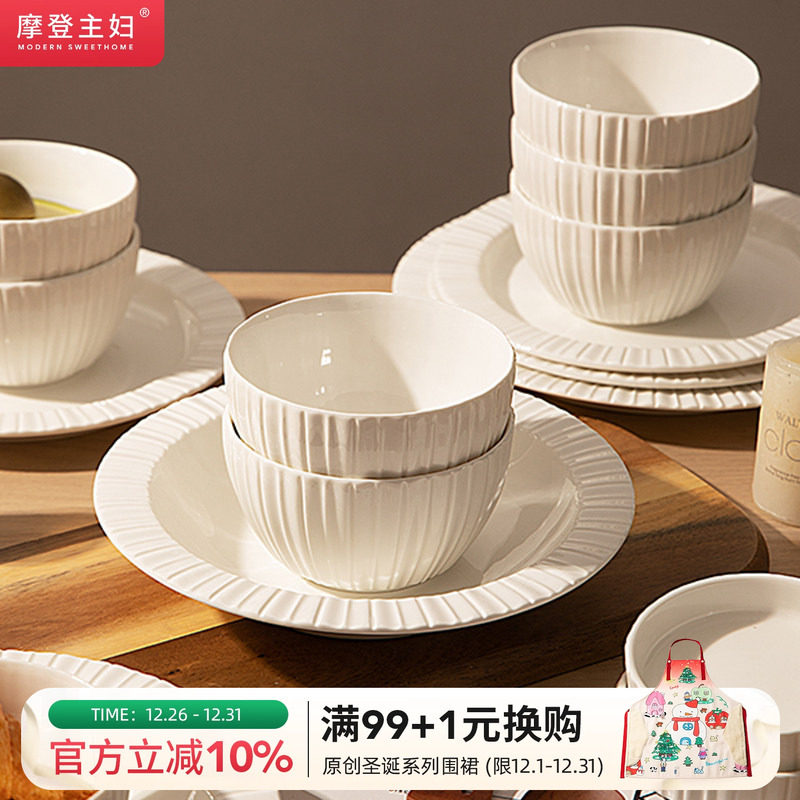 摩登主妇白瓷莱茵碗盘餐具家用2025新款高级感米饭碗盘子菜盘汤碗