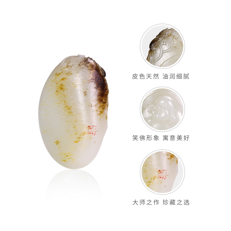和合玉器和田玉白玉籽料笑佛挂件弥勒佛黑皮子料雕刻挂件佛公吊坠
