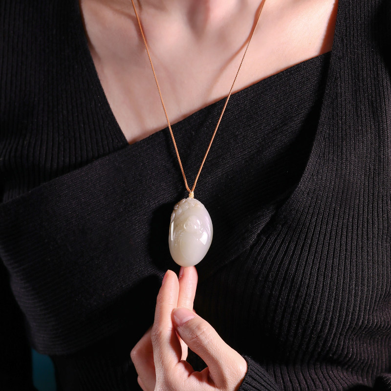 周六福和田玉吊坠平安扣玉坠项链玉石白玉挂坠男女款圣诞礼物
