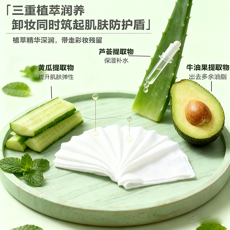 牛油果卸妆湿巾眼唇脸三合一脸部温和深层清洁一次性抽取式卸妆棉