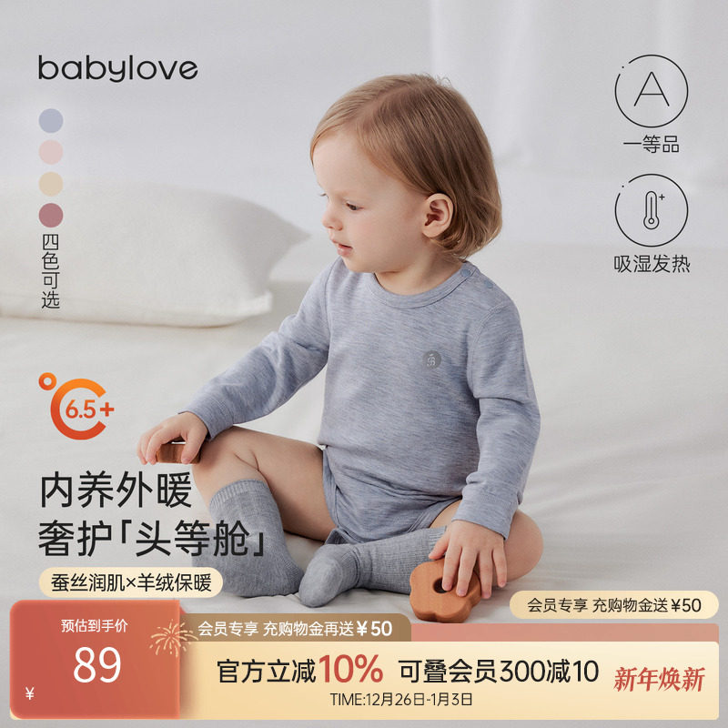 babylove【头等舱】婴儿包屁衣秋冬蚕丝羊绒三角哈衣保暖打底睡衣