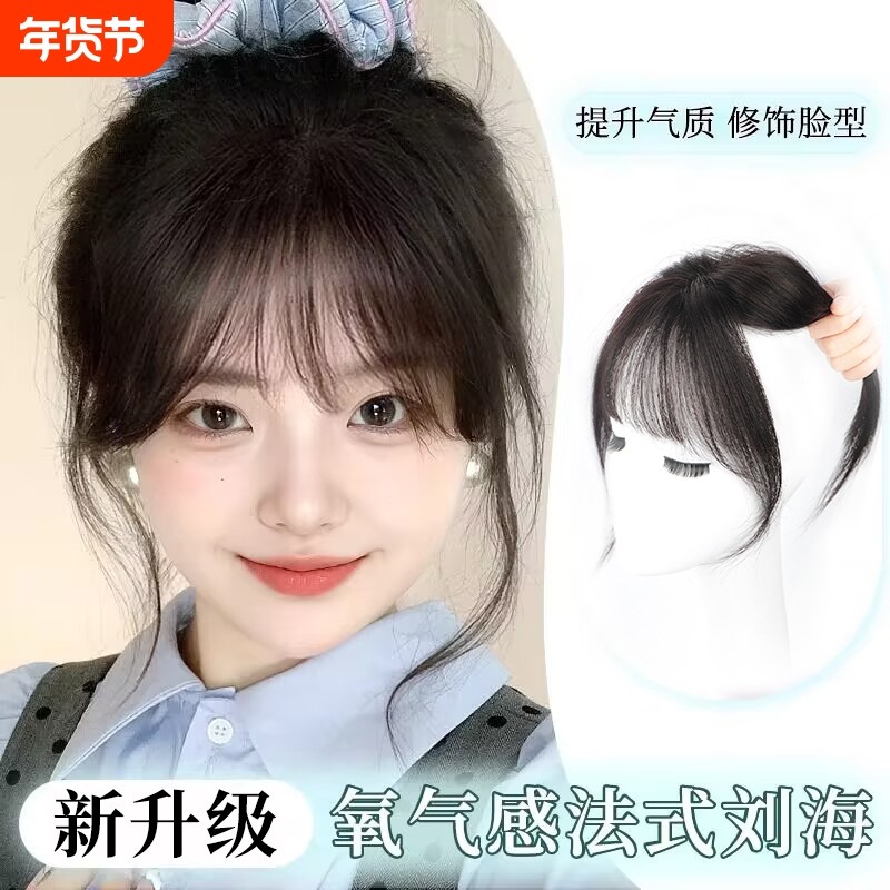 刘海假发女片头顶补发蓬松真发前额遮白发高颅顶增发量法式假刘海