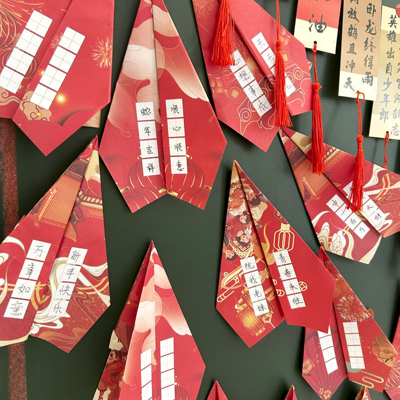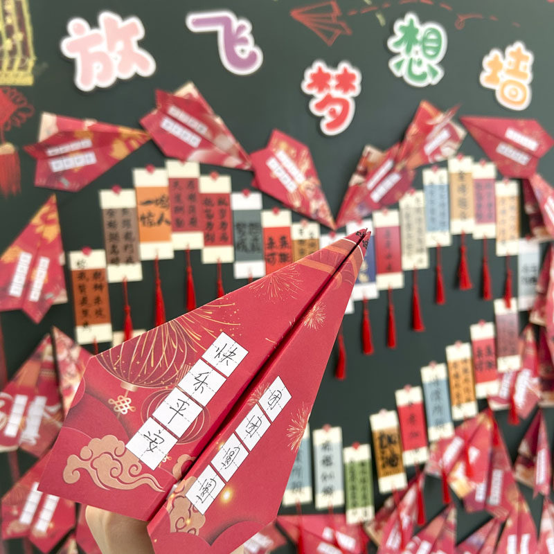 新年开学班级文化墙布置纸飞机创意加油激励志学习贺卡教室中考氛围装饰初中高三学生手写书法祝福挂件留言卡
