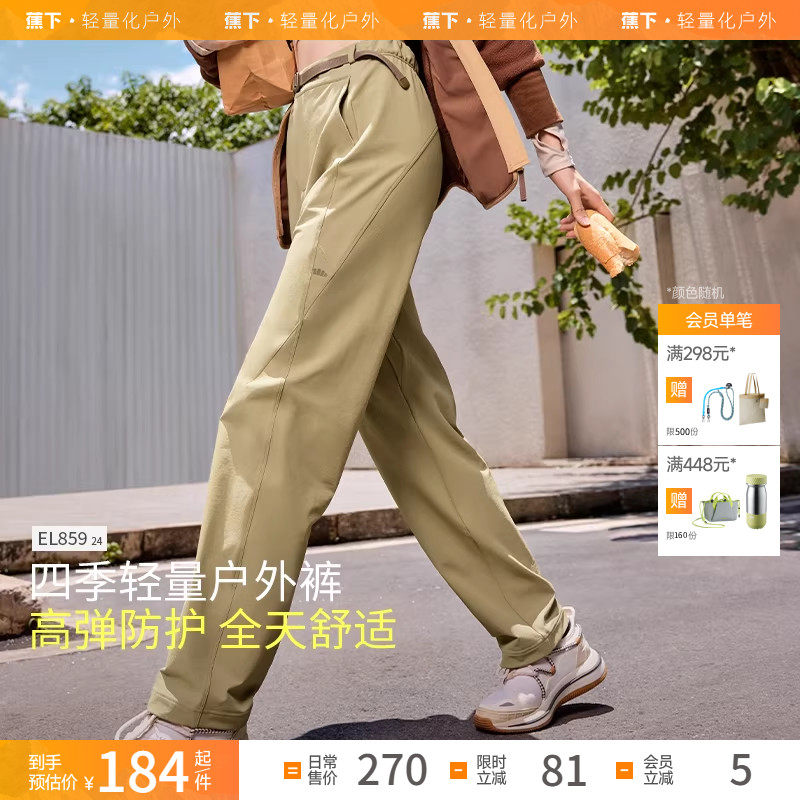 蕉下锥形裤女EL85824 户外防风防泼水高弹速干运动黑色显瘦休闲裤