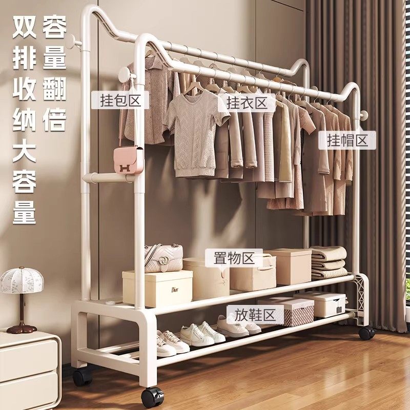 晾衣架落地家用卧室双杆挂衣架室内置物简易衣帽架阳台晒衣服杆架