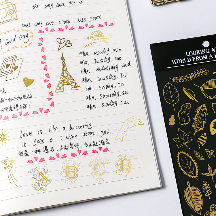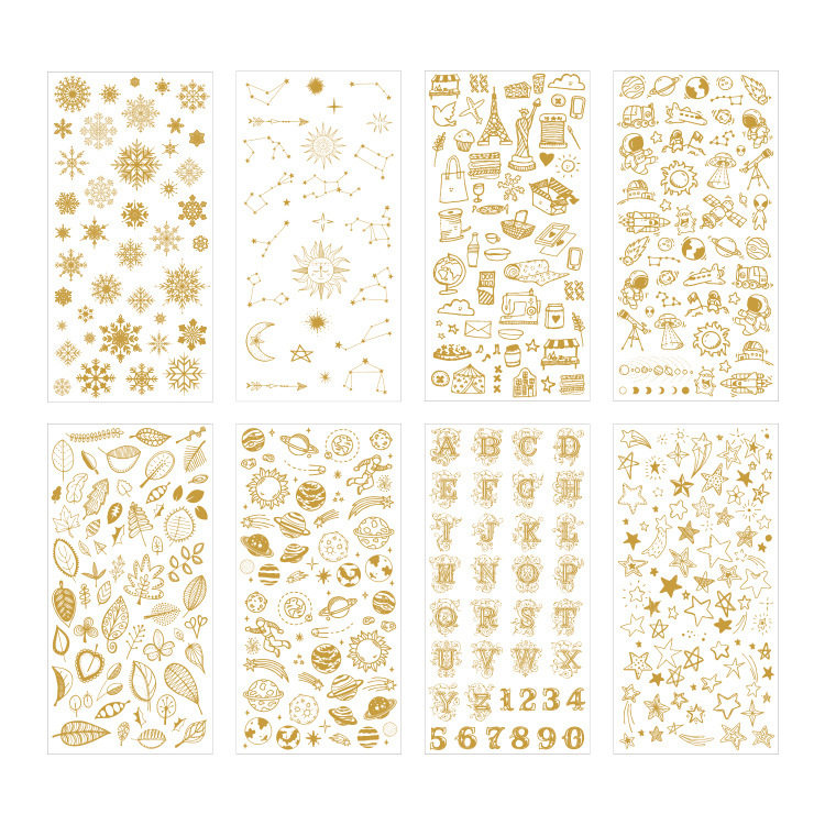 PVC烫金贴纸手账星球星座太空雪花DIY手机壳水杯装饰防水手帐贴画