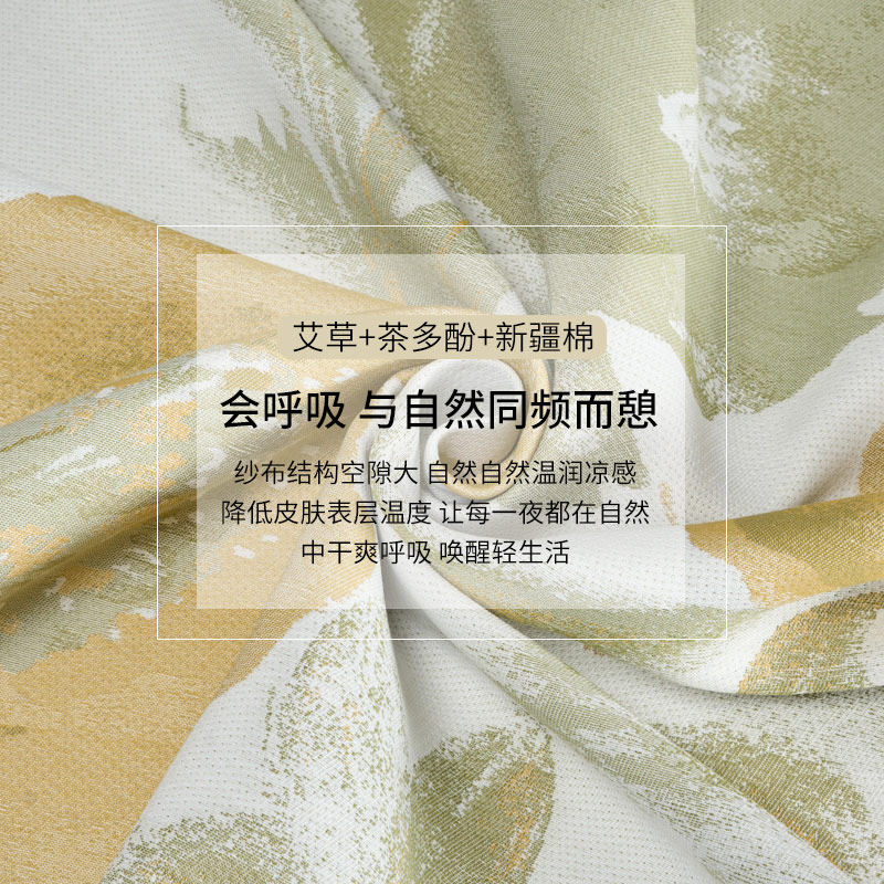 如奕高档长绒棉艾草纱布软凉席夏季冰丝凉感可机洗折叠空调席子