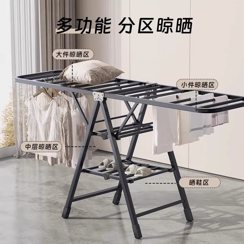 折叠晾衣架落地家用阳台凉晒衣架卧室挂衣杆晒被子神器室内多功能