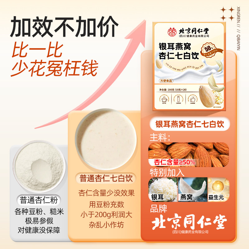 北京同仁堂银耳燕窝杏仁七白饮粉营养早餐冲泡美白代餐官方旗舰店