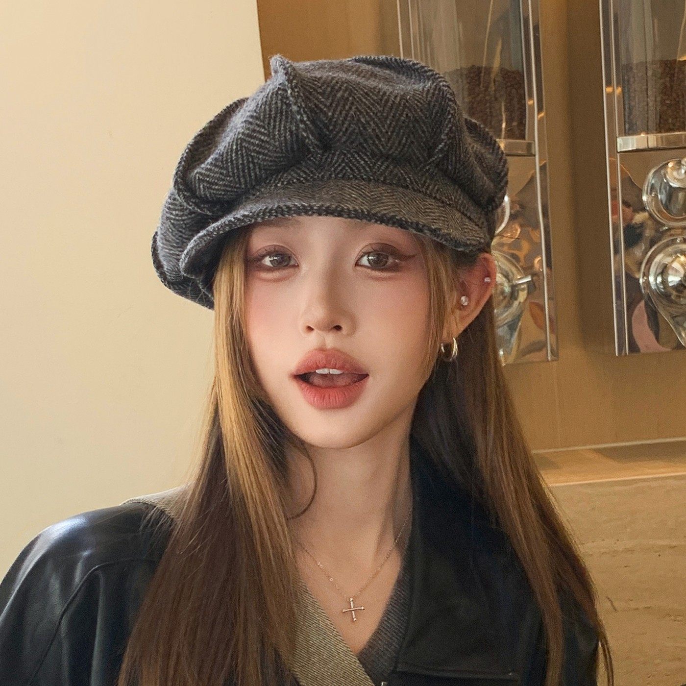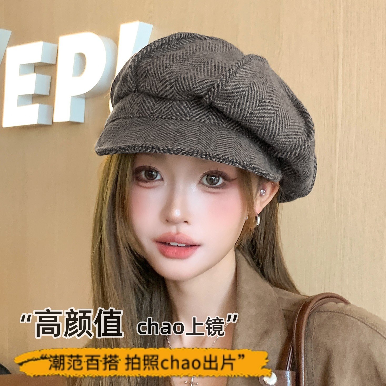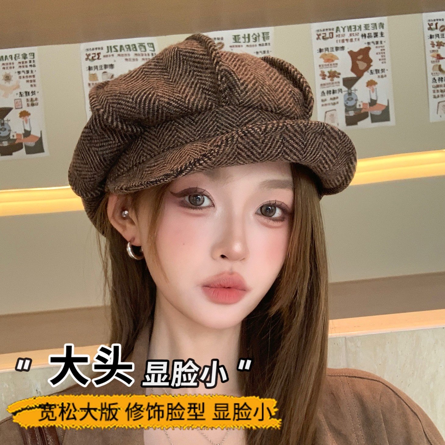 秋冬贝雷帽子女款2025新款云朵八角帽大头围显脸小复古画家帽休闲