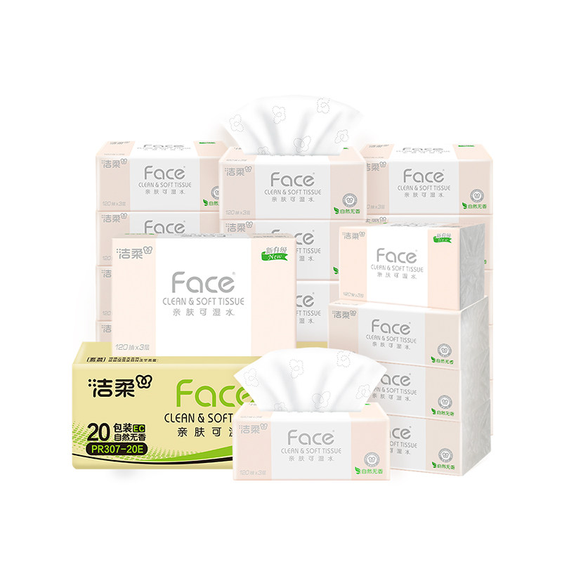 洁柔粉face抽纸3层120抽20包整箱卫生纸巾家用实惠装餐巾纸面巾纸
