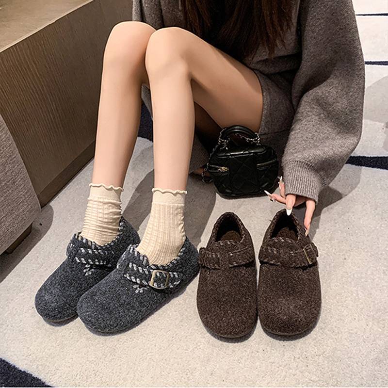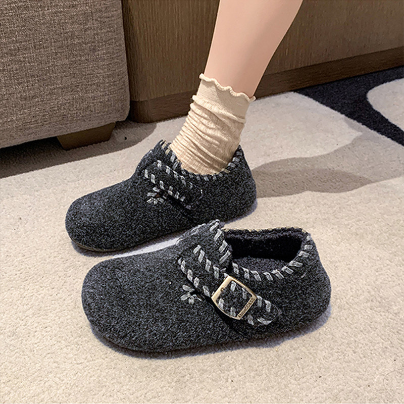 TATAFOCUS~加绒毛毛鞋韩版圆头皮带扣2025冬季新款勃肯鞋女35-28